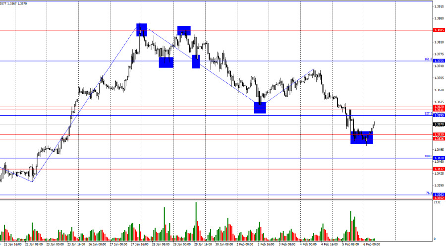 วันนี้เจอระดับแนวรับที่ 1.3526–1.3539 การตีกลับจากโซนนี้ทำให้คาดหวังการกลับตัวในทางที่ดีขึ้นของเงินปอนด์และการเติบโตบ้างไปยังระดับ 1.3611–1.3620 อย่างไรก็ตาม แนวโน้มได้เปลี่ยนไปสู่ทิศทาง "ขาลง" แล้ว การตีกลับของคู่สกุลเงินจากระดับ 1.3595–1.3620 จะสนับสนุนค่าเงินดอลลาร์สหรัฐฯ และการกลับมาตกลงต่อไปยังระดับแนวรับที่ 1.3437–1.3470สถานการณ์ของคลื่นได้เปลี่ยนเป็น "ขาลง" คลื่นขึ้นที่เสร็จสมบูรณ์ล่าสุดล้มเหลวในการทำลายยอดก่อนหน้า ในขณะที่คลื่นลงใหม่ได้ทำลายระดับต่ำก่อนหน้านี้ เราได้เห็นคลื่น "ขาลง" ติดต่อกันสองครั้ง ซึ่งเพียงพอสำหรับการเปลี่ยนแปลงของแนวโน้ม พื้นหลังข้อมูลสำหรับเงินปอนด์ยังคงอ่อนแอในช่วงหลายเดือนที่ผ่านมา แต่พื้นหลังข้อมูลในอเมริกากลับแย่กว่านั้น ฝ่าย "ขาขึ้น" ได้รับการสนับสนุนอย่างสม่ำเสมอจาก Donald Trump ในขณะนี้ ฝ่าย "ขาลง" และ "ขาขึ้น" กลับผลัดกันครอบงำตลาดพื้นหลังข้อมูลในวันพฤหัสบดีนั้นอาจเป็นบวกต่อเงินปอนด์ เพราะไม่มีใครในตลาดที่เชื่อว่าจะมีการผ่อนคลายทางนโยบายการเงินโดยธนาคารแห่งประเทศอังกฤษ รวมแล้ว นักเทรดมีความเห็นที่ถูกต้อง—อัตราถูกคงไว้สร้างระเบียบ อย่างไรก็ตาม เป็นที่รู้กันว่าคณะกรรมการ MPC ได้มีมติอย่างยากลำบากในการตัดสินใจนี้ มีสมาชิกสี่คนในคณะกรรมการที่ลงคะแนนให้กับการผ่อนคลาย ซึ่งได้สร้างความสงสัยในตลาดทันทีเกี่ยวกับความมุ่งมั่นของธนาคารแห่งประเทศอังกฤษในการควบคุมอัตราเงินเฟ้อ ข้าพเจ้าขอย้ำเตือนว่ารายงานเงินเฟ้อล่าสุดสำหรับเดือนธันวาคมได้ประกาศว่าเงินเฟ้อได้เร่งขึ้นถึง 3.4% ต่อปี ดังนั้น ไม่มีใครในตลาดที่คาดหวังแรงกดดันแบบ "dovish" จากคณะกรรมการบอร์ดรัฐบาล ตอนนี้นักเทรดจะต้องสังเกตุว่าอะไรกำลังเกิดขึ้นใน "ราชอาณาจักรอังกฤษ" Andrew Bailey ได้กล่าวในงานแถลงข่าวว่าเศรษฐกิจของอังกฤษเริ่มต้นปี 2026 ได้ดี และเงินเฟ้อจะยังคงชะลอลงในระยะกลาง อย่างไรก็ตาม ตัวเลขอย่างเป็นทางการระบุสิ่งที่แตกต่างไปเล็กน้อย GDP ยังคงเติบโตอย่างอ่อนแอ และเงินเฟ้อกำลังเร่งขึ้นแทนที่จะชะลอลง หรืออย่างน้อยที่สุดยังคงอยู่ในระดับสูงอย่างต่อเนื่อง ดังนั้น เงินปอนด์จึงได้รับผลกระทบเมื่อวานนี้ที่มันไม่ควรจะได้รับ แต่บรรดานักเทรดก็ได้ตอบสนองต่อท่าที "dovish" ที่ไม่เหมาะสมของธนาคารแห่งประเทศอังกฤษอย่างเหมาะสมในกราฟ 4 ชั่วโมง คู่สกุลเงินได้ขึ้นมาถึงระดับ Fibonacci ที่ 127.2% – 1.3795 และดีดตัวกลับจากระดับนี้ ซึ่งนำไปสู่การกลับตัวที่เป็นผลดีต่อเงินดอลลาร์สหรัฐ และมีการลดลงสู่ระดับแนวรับที่ 1.3369-1.3435